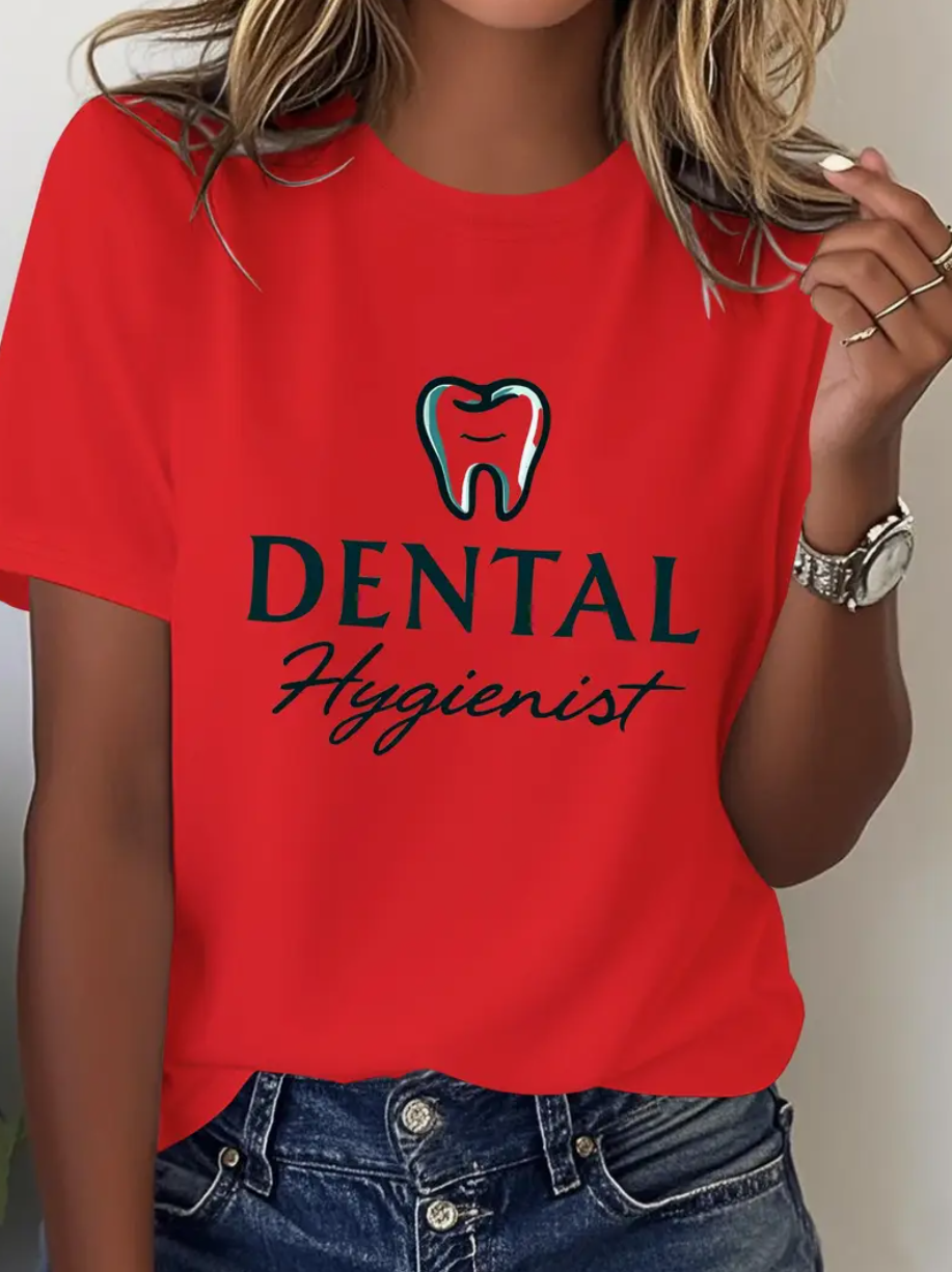 Camiseta de Higienista Dental – Estampado de Dientes – Color rojo, Ropa Profesional para Asistente Dental – Suave y Cómoda Tee Pura – Uniforme Clínico, Atuendo Diario para Salud, Ropa Duradera, Prenda Laboral Casual, Personal de Clínica