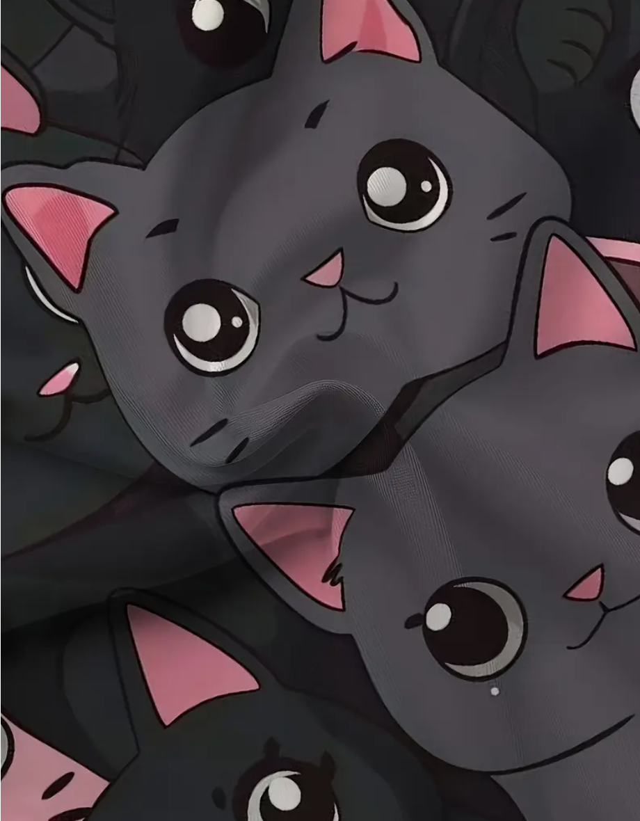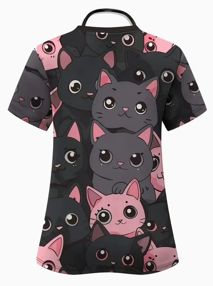 Camiseta mangas cortas cuello V «Gatitos» – Color rosa y negro – Estampada – Talla M